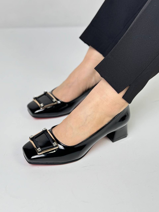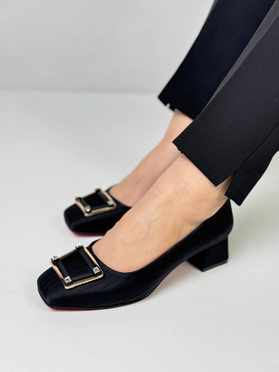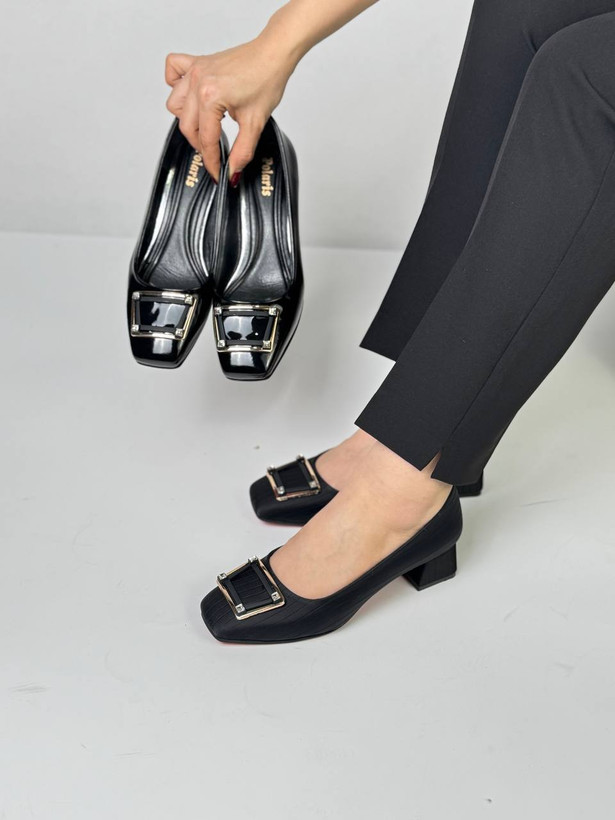 کفش مجلسی بسیار زیبای چهار سانت ، تولید شده در دو جنس ورنی و ساتن خطدار ، با پاخوری عالی و قالب ترک بسیار راحت