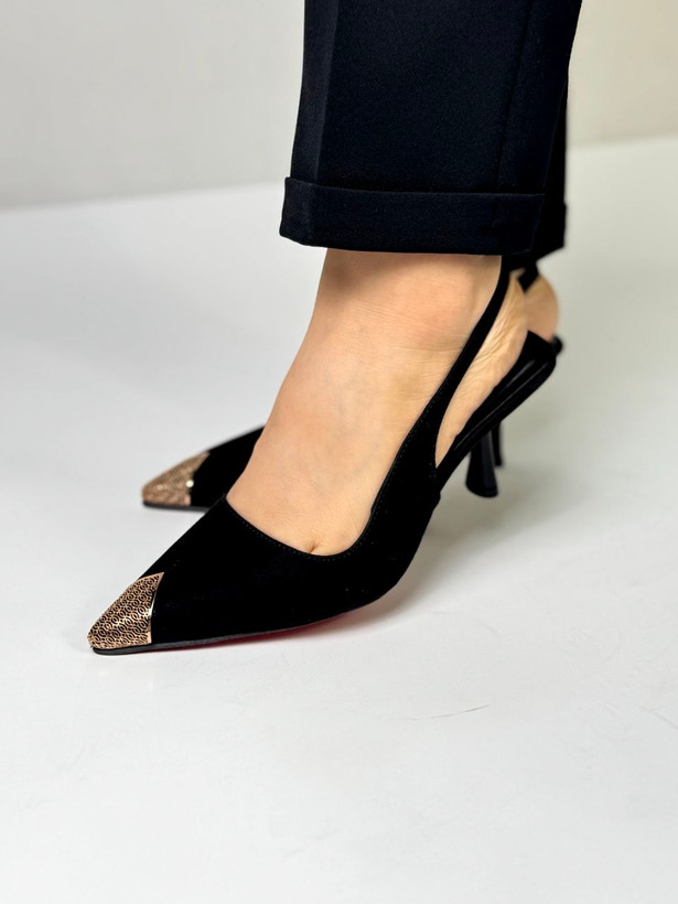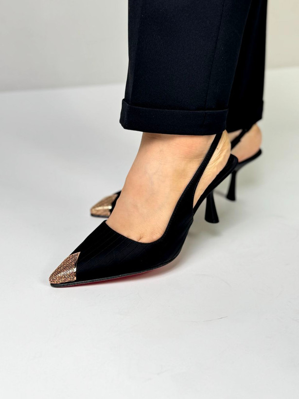 کفش مجلسی بسیار زیبا با پاشنه ی هفت سانت خارجی طراحی شده با یراق رزگلد خارجی طرح زارا