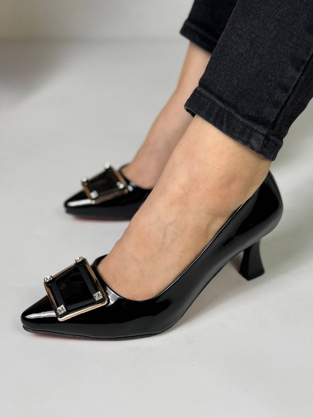 کفش مجلسی زنانه فوق شیک ، لودوشکای پنج سانت با پاشنه ی هرمی ظریف با یراق زیبای خارجی و جنس ورنی وارداتی پیشنهاد مجموعه با سه ماه گارانتی و ضمانت زیبایی
